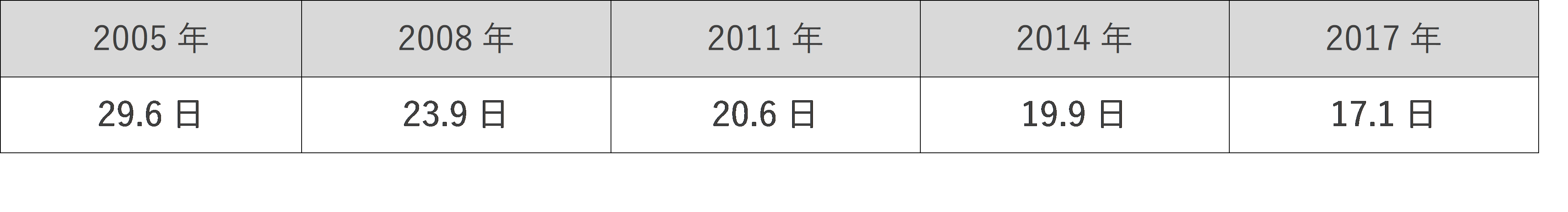「がん」というと、長い間入院して治療を受けるイメージを持っている方も多いかもしれませんが、厚生労働省が発表した「患者調査の概況(2017年)」によると、「がん」による入院日数は、2005年以降年々減少傾向にあります(表1)。